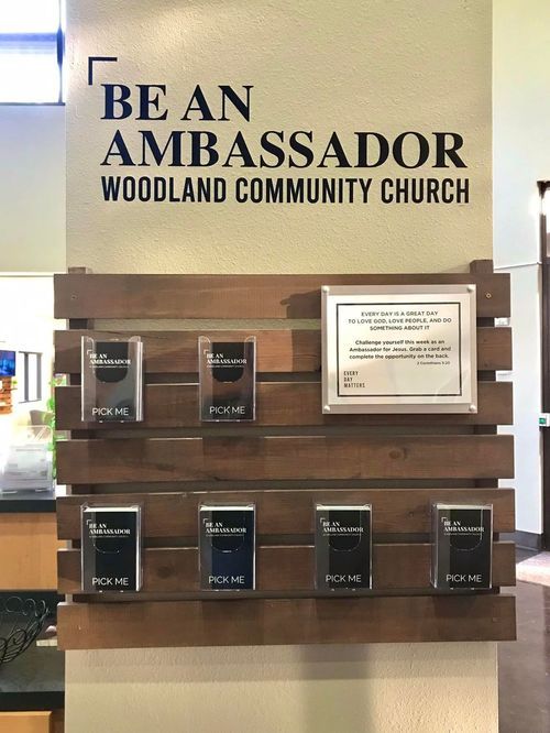Challenge yourself this week to be an Ambassador for Jesus. If you'd like some ideas just pick a card from our "Be An Ambassador" wall next to the Welcome Desk in the lobby. Complete the fun opportunity to serve someone this week! There’s all kinds of different “asks”.